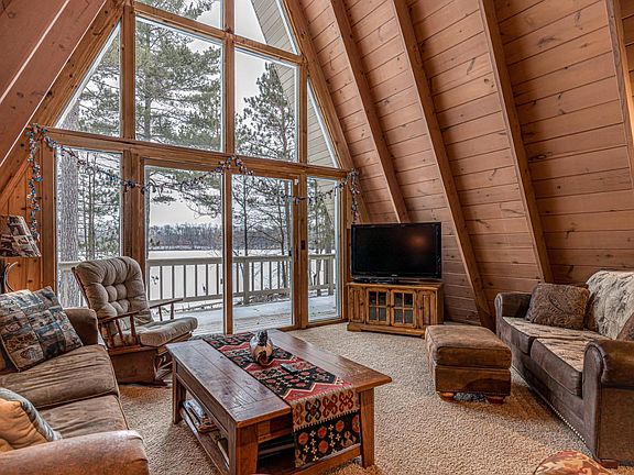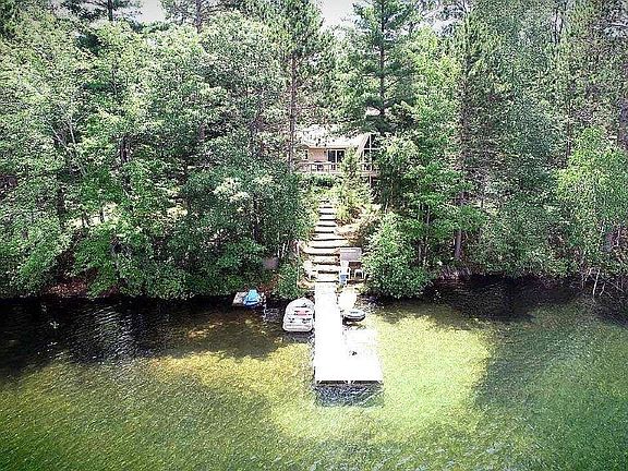Pristine & Crystal Clear Jerms Lake (more popularly known as Spring Lake) home on 4.7 acres, just 8 minutes from Minocqua! This incredibly charming 3BR/2BA A-Frame w/beautiful addition has so much to offer! You'll love the character & warmth here! The main level has a comfortable eat-in kitchen w/dining area, large living room w/gas stove, huge windows facing the lake & patio doors in both kitchen & living room to the large deck where you'll enjoy the best view! Enclosed lakeside porch is perfect for sunset watching, cribbage playing & coffee in the morning. There's a finished loft, sure to be the kids favorite spot! Lower level walk-out offers a sleeping area/BR, wet bar, full bath, family room w/a new gas stove & laundry. Extensive landscaping, paved drive, 2 car det, 2 sheds are just a few of the great amenities. Gradual slope to 200' sandy shoreline! Jerms Lk is a private 38' deep clear lake with great fishing, kayaking, swimming & more. Comes furnished too!! This one is special..