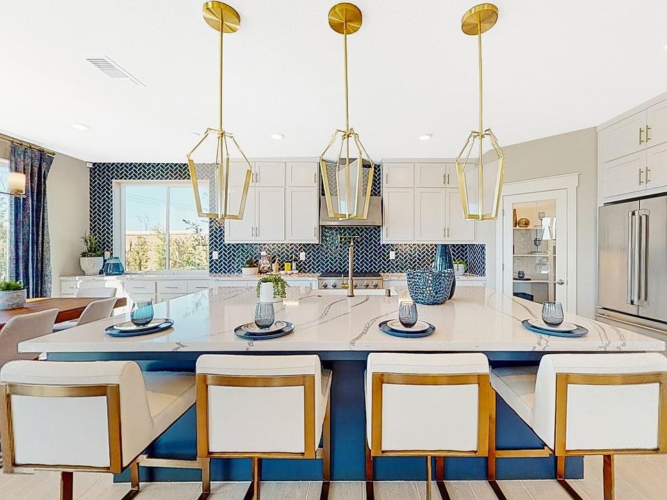 Welcome to this stunning home, where luxury and modern design come together. With 4 bedrooms and 3 bathrooms, this home offers a perfect blend of style and comfort. The designer kitchen features a large center island, quartz countertops, and a spacious walk-in pantry. The gourmet kitchen is equipped with a Caf 36 rangetop, double wall oven, champagne bronze hardware, and an eye-catching blue gloss tile backsplash. Downstairs, a convenient bedroom and full bathroom are perfect for guests or a home office. Upstairs, enjoy a versatile loft, and a luxurious primary suite with a large walk-in closet with beautiful bathroom along with two additional bedrooms and laundry room! The covered patio and low-maintenance backyard are perfect for outdoor living and entertaining all year around! Located in an award-winning school district and just minutes from shopping, dining, and entertainment, this home offers both convenience and luxury. With over $350,000 in upgrades, this Tri Pointe Model Home is a must-see!