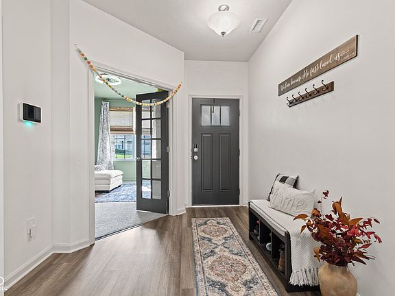 Welcome to this beautifully maintained 4-bedroom, 2.5-bathroom home offering a thoughtfully designed living space. Built in 2020, this residence blends modern amenities with personalized touches that truly set it apart. Step inside and immediately feel the warmth and inviting atmosphere. The dedicated home office, currently used as a playroom, features a striking accent wall that adds both character and a modern flair. The open-concept layout includes raised ceilings, a spacious eat-in kitchen with a stunning center island, sleek quartz countertops, and ample storage throughout. The adjoining great room and dining area provide a cozy yet open setting, ideal for hosting friends and family. Just off the kitchen, the mudroom and home planning center are perfectly tucked away to keep the main living space looking crisp and clean. Upstairs, the generous primary suite includes a double vanity and a walk-in shower you'll love, with granite countertops adding a touch of luxury. Three additional bedrooms share a well-appointed hallway bath, also featuring granite surfaces. A convenient upstairs laundry room adds even more functionality. Outdoor living shines with a newly added deck and a beautiful privacy fence, an ideal setup for children, entertaining, or simply relaxing in your backyard. Plus, enjoy access to neighborhood amenities like walking trails and a playground, perfect for active lifestyles and family fun.