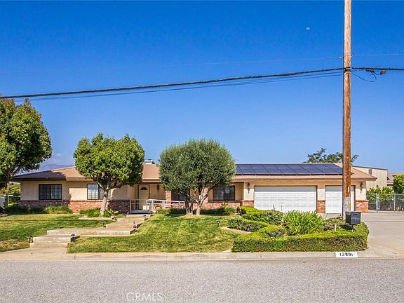 YUCAIPA SINGLE STORY POOL HOME ON ALMOST 1/2 ACRE OF LAND. HUGE RV GARAGE/WORKSHOP PLUS FULLY PAID SOLAR SYSTEM AND DETACHED STORAGE BUILDING, which could possibly be converted to an apartment, Mother-in-law quarters or ADU! 4 Bedrooms, 2.5 Baths, Formal Living and Dining Rooms, Family Room with Fireplace, a Sun Room (not included in the county assessor square footage with its' own mini split Lennox AC/Heating unit,) Kitchen with stainless appliances including refrigerator, butler's pantry, walk-in pantry and Dining area. Newer carpeting and updated master bath. Home also features an indoor Laundry Room and another huge Walk-in Pantry/Storage Room. This backyard is fabulous with its' sparkling Swimming Pool and Spa and fruit orchard. In addition to the 3 car attached garage, the massive RV garage measures approximately 26' x 48' with roll up doors 12' wide and 13' high - attached lift included in sale. There is also RV parking behind the gate and 2 metal storage containers. Almost brand new FULLY PAID FOR SOLAR SYSTEM will help with energy savings. Don't wait - This property has endless possibilities for you to make it your forever dream home! Come on home today!