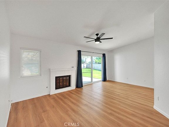 Very desirable Hampshire Village community with low $193 association dues that includes fire insurance, community pool/spa, and front yard maintenance. This one-story floor plan is one of only a handful. Vinyl wood look laminate floors throughout. Brand new kitchen with granite counter tops, tiled back splash, stainless steel appliances (gas range and microwave), shaker cabinets, and recessed lights. Enjoy the breakfast nook for casual dining. Vaulted ceilings in the living room, warm and toasty fireplace burns gas logs or wood. Two new bathrooms with tiled showers, glass shower doors, shaker cabinets, and granite countertops. Indoor laundry room and an attached two car garage with covered walkway to the front door. The ac has been replaced, new front screen door. Two newer dual pane sliding doors exit to the double sized (perhaps the largest lot in the community) private back yard. One slider is off of the master suite the other off of the living room. Both sliders enter the covered patio with concrete deck. Concrete tile roof. This home is in a planned unit development and shares one wall with an adjoining home. Extra parking with the private concrete driveway for two cars. Community pool and spa, sport court, barbecue area, meandering walking path. Excellent schools and nearby shopping. Chino is a multiple award winner of Top 100 Cities for Young Families.