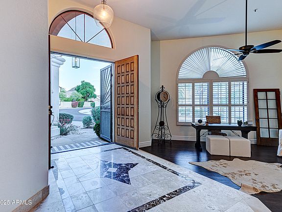 The Chateau at Rio Montaña, offers elegant single level-living in a serene 85259 neighborhood. Enjoy a light and open kitchen with soaring ceilings, granite countertops, natural wood cabinetry and abundant storage. Multiple living areas, including a formal dining room, provide plenty of options for family and entertaining. The spacious primary suite features twin walk-in closets, a soaking tub, office nook and direct backyard access. Outdoors, relax by the sparkling pool with a Baja shelf and water feature, covered patio and built in BBQ area. Additional highlights include wood shutters, multiple fireplaces, a 3-car garage, and low maintenance landscaping. Ideally located near hiking/biking trails, Rio Montaña Park, golfing, MAYO, Honor Health, BASIS, and top-rated Scottsdale schools.
