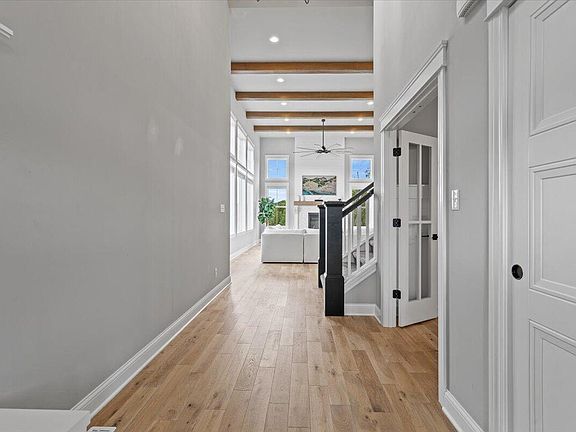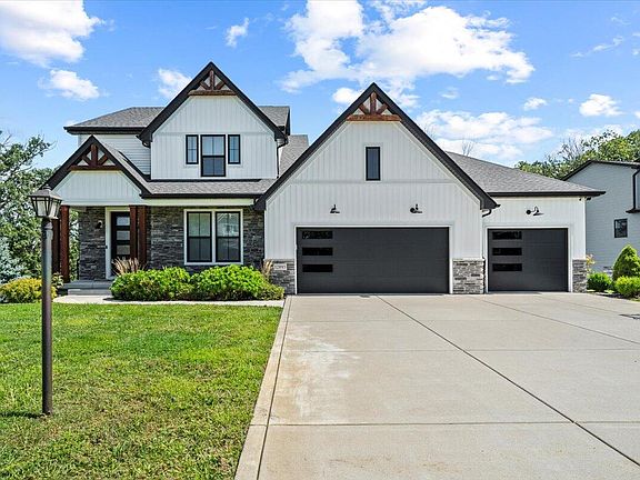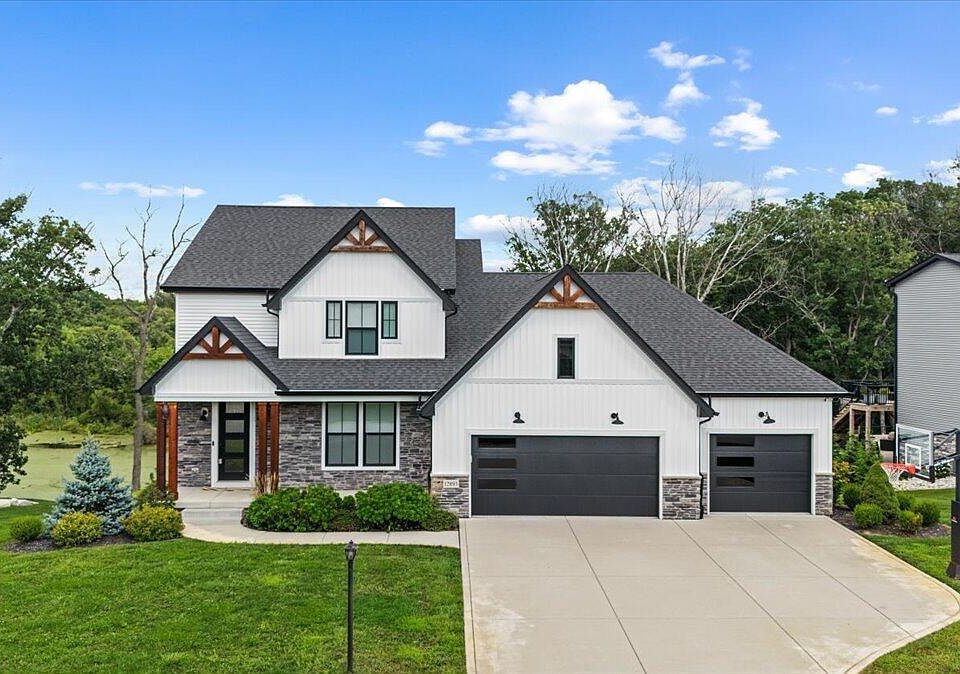 Welcome to this 5 Bedroom, 4 Bathroom gorgeous home located in a serene neighborhood in Crown Point! This home comes packed with features from automatic blinds, to soaking tub, illuminated back patio and so much more! Walking into the foyer you'll find plenty of storage space for you and your guests with a closet and storage bench. Off to your right you'll find the formal dining room complete with wainscotting, chandelier and automatic blinds. The main living room provides plenty of space, natural light, and an airy feel with vaulted ceiling, exposed beams, and warm fireplace. Off of the back of the living room is the main level deck and its beautiful views. The kitchen is perfectly adorned with plenty of cabinetry, oversized island, walk-in pantry, quartz countertops and stainless steel appliances. The main floor master bedroom features plenty of space and great views of the back yard trees and pond. The ensuite bath is beautifully adorned with a large soaking tub, grey wainscotting with matching subway tile backsplash, large shower and expansive walk-in closet with quick access to the laundry room. Upstairs there are two large bedrooms and a bathroom. The finished walk-out basement is ready for entertaining with a gathering room that exits onto the back patio, two more ample sized bedrooms, full bathroom, and plenty of storage. Exiting on to the back patio you'll find a perfect space for entertaining. The patio is adorned by a large stone counter that houses a grill, illuminated walkways in the stone, and a built-in firepit ready for you and your friends and family to relax and soak up the views around. This home is also located in the award winning Crown Point school district! Don't let this one slip away. Schedule your showing today!