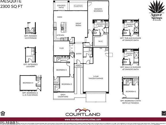 The Mesquite offers 2,300 sq. ft. of thoughtfully designed single-story living, featuring 3 bedrooms, a versatile flex room, and 2.5 baths — all complemented by a spacious 3-car tandem garage.