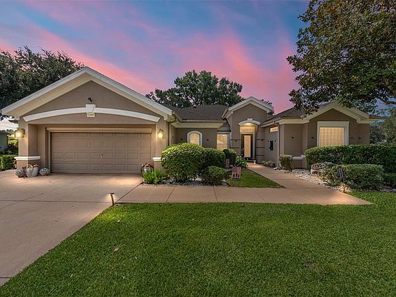 GOLF COURSE home with tons of updates and upgrades located in Del Webb’s Spruce Creek Golf & Country Club in Summerfield, just North of The Villages. This community is a 55+ community, 24/7 Manned Guard Gates, Citizen Patrol, over 70 clubs, 3 pools and hot tubs, Pickleball & Tennis Courts, Softball Field and so much more! This Hampton model has so much to offer not to mention being a golf course home located on a cul-de-sac lot (8th hole of the Memorial Course): Home was expanded at build from original floor plan, Roof replaced in 2021, Lanai Windows in 2022, Birdcage in 2021, HVAC in 2025/2015, New Solar Tubes (4), SS Appliances, New Washer & Dryer, New Water Softener System, Epoxied Garage Floor & Designer Drive & Walk, Automatic Screens on Main Garage Door and Golf Cart Garage Door, Glassed in Lanai under Heat & Air (an add'l 400 sf apprx), Newer Hot Water Heater, Attic Storage, Double Front Doors with Beveled Designer Glass Inserts, His & Her Primary Closets, All Blinds are Brand New, Pendant Lighting over Breakfast Bar, Granite Countertops and Tin Backsplash, Built-in Bookshelf in Back Foyer, Roman Shower in Primary Bathroom with split vanities, Garage Doors are Insulated and so much more. There is also a Shared Irrigation Well located on the Property. (Taxes DO NOT reflect Homestead Exemption.) Seller is offering a 1 Year Broward Factory Service Home Warranty. Come see this spectacular home today!