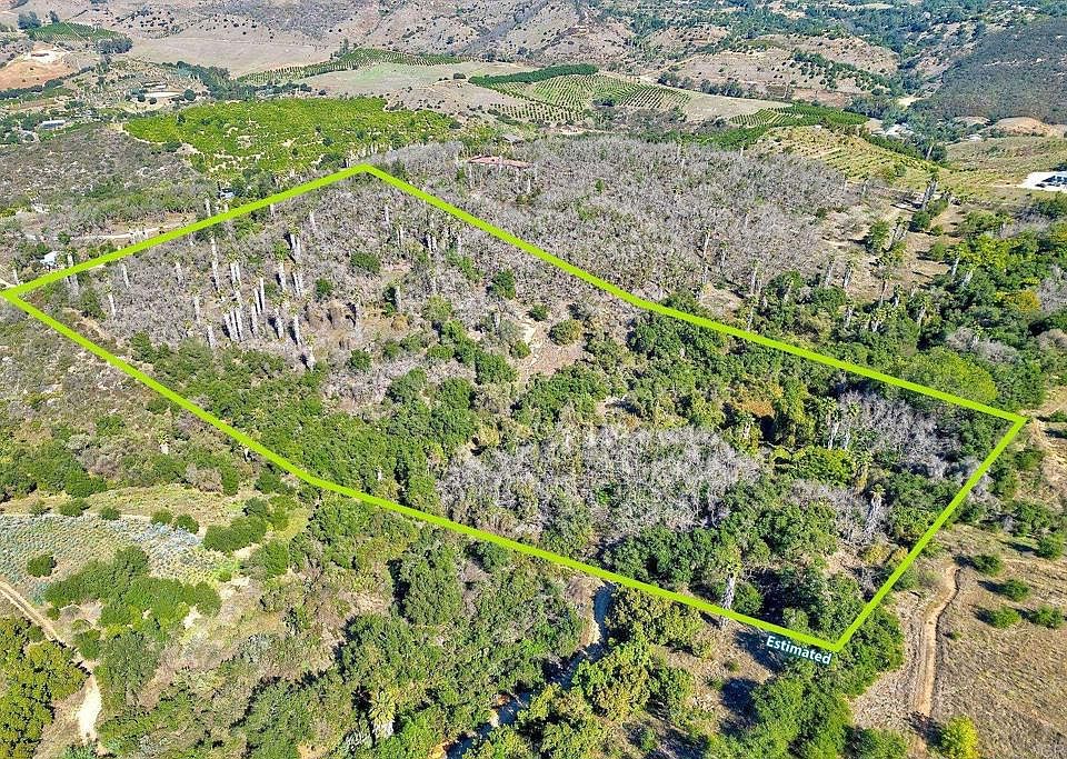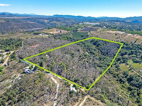 Spanning 20.86 acres, this one of a kind property is an open canvas for your agricultural or residential dreams. Very private and serene. Secured on three sides with fencing. Site has some level areas with mostly gentile slopes. Beautiful Oak trees in some areas, with native chaparral. This property used to be a top producing avocado farm, with over 1000 Avocado tress. Water 2" meter connected, city water. Newly installed fire hydrant near the northern boundary. Electricity available at street. With it's south facing orientation and fertile soil it is perfectly suited for vineyards, organic orchards or endeavors like your residential dream home.