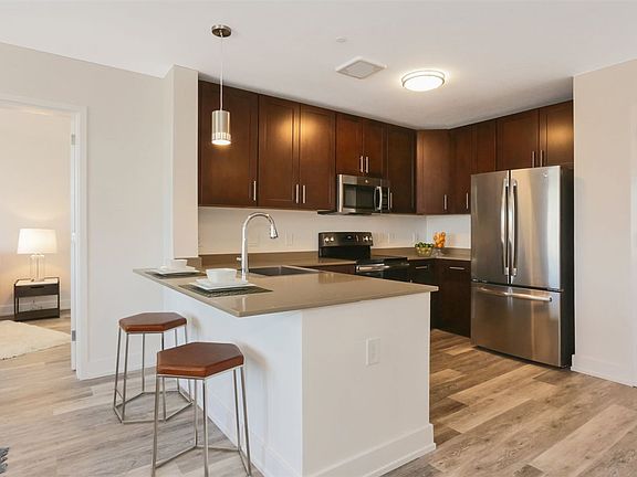 Luxury living in this new 10 story hi-rise building located half a block from restaurants, shops and direct NYC transportation. 87% of the units have dramatic Manhattan views. Chic 1 and 2 bedroom units have ultra modern European kitchens with 42" cabinetry and GE stainless steel appliances, in unit washer/dryers, LED lighting and much more. Building features indoor parking garage, Mircom entry system, fitness center, package delivery rooms, pet friendly and live-in super. NO BROKER FEE WITH 18 MONTH LEASE.