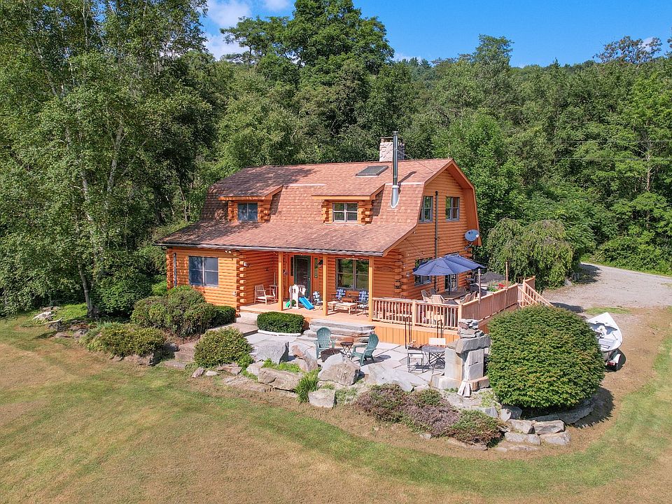 Escape to the highly sought-after West Branch of the Delaware River with this rare 3-bedroom, 2.5-bath log cabin tucked just minutes from the Village of Deposit. Set in the famous no-kill fly-fishing zone, this is a paradise for anglers and nature lovers alike. Capturing a country ambience yet with modern amenity, the home features a cozy wood stove, a wood-burning fireplace, and three efficient mini-split units for year-round comfort. Step outside to the newly installed bluestone patio with its own fireplace-perfect for relaxing evenings overlooking the river. The property boasts about 400 feet of river frontage, a stocked pond for additional recreation, and a total of 4.55 acres across a double lot. The vacant lot includes its own well and septic-ideal for a guest house, pole barn, or future expansion. Nestled on a quiet, private road, this is more than a home-it's a private riverfront sanctuary with endless possibilities!