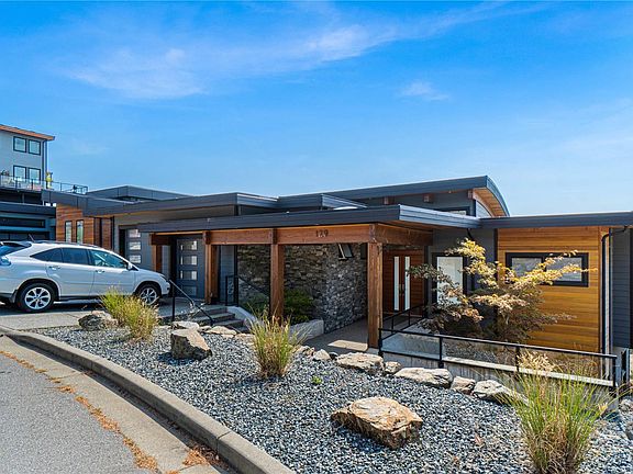 Perched above the coastline in one of the most coveted locations, this West Coast Modern home blends architectural elegance with natural beauty. Designed to harmonize with its surroundings, it offers panoramic views of Departure Bay, mountain vistas, and endless skies through expansive glass walls. Inside, clean lines, 15-ft vaulted ceilings, and rich natural finishes create a serene, luxurious space. The open main floor features a chef’s kitchen with custom cabinetry, quartz counters, and high-end appliances, framed by breathtaking sightlines. The great room with sleek gas fireplace opens to a view deck, perfect for morning coffee or sunset entertaining. The main floor primary suite is a private retreat with floor-to-ceiling windows and spa-inspired ensuite. The lower level offers flexible space for media/family room or office. Energy-efficient systems like A/C and hot water on demand. Low-maintenance landscaping, this home is minutes from beaches, parks, ferries, and city amenities!