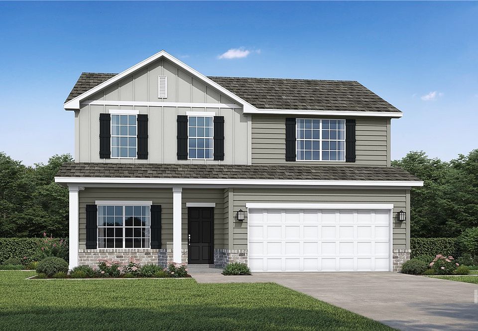 Our Palmyra floor plan, located in The Village at Sassafras, is a beloved choice among homebuyers! This 4-bedroom, 2.5 bath residence features a welcoming foyer that leads to a versatile flex space, ideal for a secondary living area or any use you envision. The generous family room, complete with an electric fireplace, seamlessly connects to the breakfast nook. The U-shaped kitchen is equipped with an island, chic cabinetry, thoughtfully selected QUARTZ countertops, and stainless steel appliances. Upstairs, the primary suite stands out with two walk-in closets, a dual vanity, a garden tub, a separate shower, and plenty of natural light streaming into the bedroom. The three additional bedrooms share a well-appointed 3-piece hall bath. Artistic renderings are for reference only, and actual floor plans, features, and inclusions may differ.