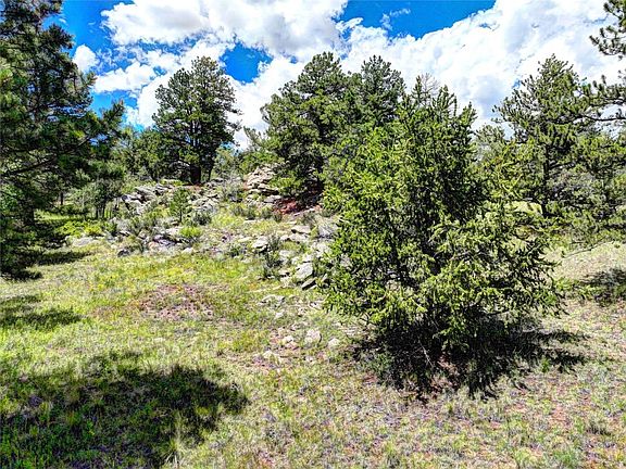This 4.2-acre property offers a picturesque blend of natural features, including rock outcroppings, Ponderosa trees, a meadow, and Aspen trees, providing a serene environment with breathtaking views of Pikes Peak. The convenience of having power access at the front of the property adds practicality.