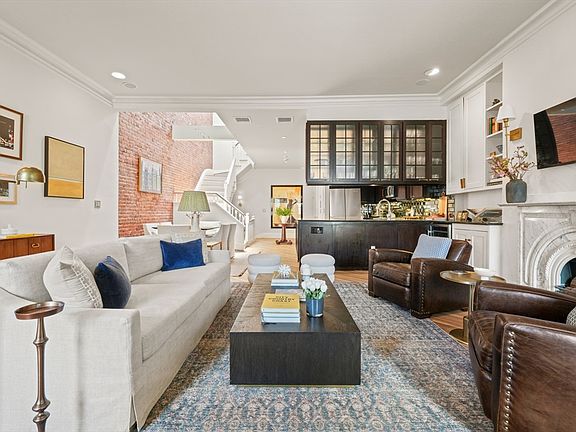 Half a block from the famed Public Garden, this 3 bed penthouse duplex features a private roof deck w/wonderful Back Bay views & on-site deeded parking. Volume of space is prevalent with a full building width open front facing kitchen/living/dining layout. Nearly 2100SF of light-filled space makes this the ideal entertaining or relaxing space in the large living room with decorative carrera marble fireplace. A generous dining area is complimented by large kitchen/powder room. Gracious staircase wraps around the dining area & is crowned by a large skylight, letting lots of light into both the first & second floors. King-sized primary bed features oversized, south-facing windows allowing for an abundance of light & frame a spectacular Back Bay skyline. An updated en-suite marble bath & wall of closets complete the suite. 2 additional guest beds are serviced by a full bath on this floor. Last but not least is the private roof deck perfect for al-fresco dining/morning coffee/apres.