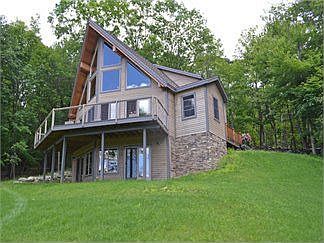 Vibrant sunsets reflect off the peaceful pond seen through the wall of glass on any of the 3 levels. Open plan with cathedral ceilings, radiant heated wood and tile floors throughout. 2 Field stone fireplaces. 3 Bedrooms. 2 baths(3rd plumbed,awaiting your touch). Large EIK. King sized master suite, bathroom w/Jacuzzi tub and double tiled shower. Finished lower level for entertaining, walkout family room with bonus room for guests. Custom rustic bar. Extensive deck overlooking Melcher Pond. Blue stone patio. Rock Garden. Stone walls. Experience the serenity. Walking distance to Copake Lake. Close to fine dining, water activities and golf. Minutes to Catamount Ski, Hudson Valley Rail Trail, and the Berkshires. Approximately 2 hrs. to NYC. Agent owned. (Internet 6184710)