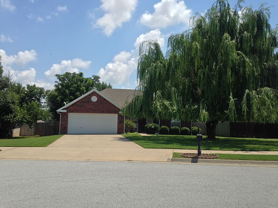 Located across from Harber Schools is this wonderful 3 BR/2 BA/1654 SF home. Features Split floorplan, large living room with gas insert fireplace, wood laminate flooring and high ceilings. Eat-in kitchen with granite will have new gray painted cabinets and new appliances. Large partially tree shaded backyard has a new (2021) wood privacy fenced. Newer Roof (Nov 2020). Near schools, parks, Lake Elmdale, shopping, restaurants and minutes from I-49. Don't miss this great property to place your roots in.