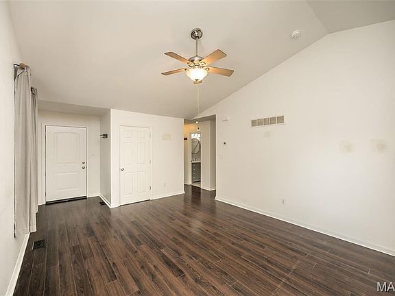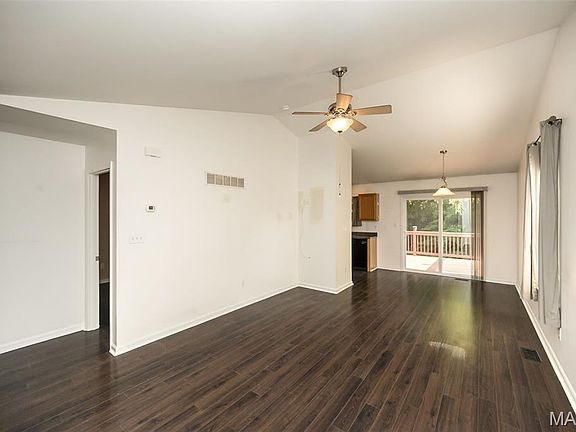 Excellent opportunity to own a detached villa-style home in O'Fallon. This well-maintained home has been freshly painted throughout and features stunning engineered wood flowing through the entire main level. The spacious living area features a vaulted ceiling and a sliding glass door that opens up to the deck and the yard that backs to trees for extra privacy. The kitchen offers plenty of cabinet space and all the modern appliances needed for today's cooking trends. The primary suite offers two closets and adjoins the updated main/hall bath that is shared with the secondary bedroom. Bedroom #2 offers a double closet as well. The lower level is a blank canvas waiting for your finishing touches for extra living space and includes a bath rough-in. This villa does not have a monthly fee. Subdivision amenities include a pool, walking trails, a basketball court and more!