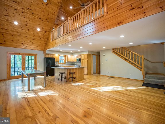 Charming Chalet – Minutes to Deep Creek Lake & Wisp! Tucked away in a peaceful wooded setting located on a no-thru drive, this 4-bedroom, 3.5-bath chalet-style home offers rustic elegance, modern comfort, and unmatched privacy. Set on 1.12 acres, the property is also being sold with an adjoining separate 1.71-acre perk-approved building lot—giving you nearly 3 acres of serene mountain living and future potential. Inside, the home showcases three fully finished levels, featuring warm wood ceilings, rustic accents, and a stunning floor-to-ceiling stone gas fireplace in the main living area. The open-concept floor plan seamlessly connects the kitchen, dining, and family room—ideal for both entertaining and everyday living. The main level also boasts a spacious primary suite with a private bath, a dedicated laundry room, and access to a large covered front porch perfect for morning coffee or evening relaxation and rear deck both with hand-painted pine railings. Upstairs, you’ll find a charming loft overlooking the great room, two more bedrooms, and a full bath. The walk-out lower level offers a cozy second living area with a second gas fireplace, an additional bedroom and full bathroom, and interior access to the attached 1-car garage. Modern updates include a Kinetico water conditioning system, Noritz tankless hot water system, a Payne furnace for heating with central air, and stainless steel appliances (Frigidaire oven/stove and LG microwave). Outdoor features are abundant: a fenced backyard, a separate fenced garden area, beautiful landscaping and garden beds, a fire pit, and a large garage shed—all surrounded by nature and mature trees. Located just 15 minutes from Deep Creek Lake, Wisp Resort, and I-68 - and only 20 minutes to several state parks, this home combines peaceful mountain living with convenience and opportunity. Whether you're looking for a full-time residence, mountain getaway, or an investment with expansion potential, this unique property has it all!
