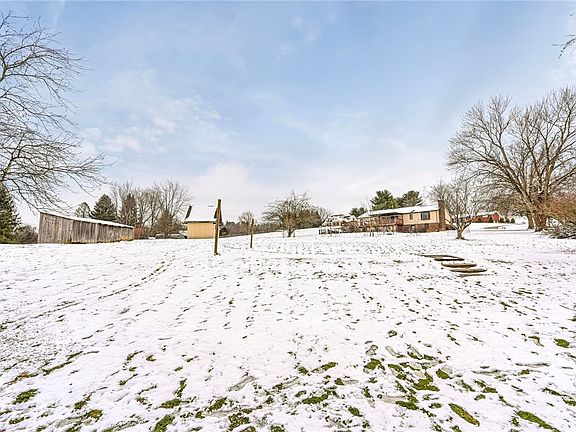 Fantastic opportunity in the Penn-Trafford School District! This spacious 3-bdrm, 1.5 bath, brick ranch offers one-level living & a convenient location. Set on more than 1/2 acre, there's ample outdoor space & endless possibilities. A covered front porch welcomes you inside, where you’ll find exposed hardwood flooring continuing beneath the remaining carpet. The living room flows seamlessly into the dining area & eat-in kitchen, creating a functional main living space. An enclosed rear porch overlooks the backyard—perfect for relaxation or future outdoor projects. A covered side porch provides a convenient entry to the kitchen. The primary bedroom includes a private 1/2 bath; the lower level offers abundant potential for a game room, office, or additional living space. The basement has been professionally cleaned, leaving a fresh blank canvas ready for your vision. This home is ready for its next owner to add finishing touches. Close to schools, Bushy Run Park, and local conveniences.