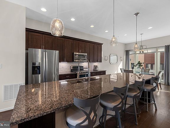 Closed Effectively for $910,000 sold to unrepresented buyer. Discover this stunning Pulte-built, 4-level townhome in the highly sought-after Cambria Square community! Offering 4 bedrooms, 3 full baths, 2 half baths, and a 2-car garage, this home is a true gem. The main level features an open-concept floor plan with engineered hardwood floors, soaring 10-foot ceilings, and expansive windows that flood the space with natural light. The spacious living and dining areas flow seamlessly into the kitchen equipped with Whirlpool stainless steel appliances, including gas stove with double ovens and microwave. . Granite countertops, a custom backsplash, and a large center island complete the space, making it perfect for cooking and entertaining. The upper level boasts a luxurious primary suite with a walk-in closet and upgraded bath featuring dual vanities. Two additional bedrooms, a full hallway bath, and a convenient laundry room complete the third level, with matching hardwood flooring in the hallway. The fourth level is ideal for guests or entertaining. It includes a bedroom with a full bath, a cozy family room area with a wet bar and wine cooler, and access to a rooftop terrace featuring a gas fireplace—perfect for watching sunsets. The lower level offers flexibility with an enclosed office, a half bath, and direct access to the 2-car garage. Additional features include oak staircases with iron balusters, dual-zone HVAC, and numerous upgrades such as custom accent walls and designer light fixtures. Lawn care and exterior maintenance are covered by the condo association. Enjoy a convenient location with walking paths to Ben Brenman Park and easy access to Van Dorn Metro Station, shopping, dining, I-395, I-495, Old Town Alexandria, DC, the Pentagon, and Arlington. Exciting news: the Landmark Mall site is set to transform into a new Inova hospital and a vibrant mixed-use town center! Don't miss this exceptional opportunity!