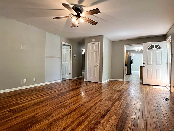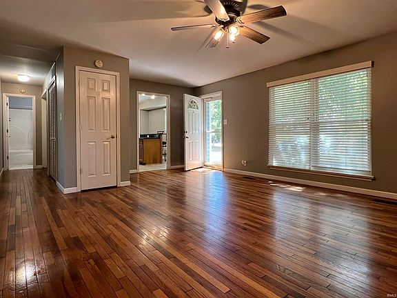 Move-in ready 3 bedroom, 1 bath ranch home with over 1/2 acre lot nestled in a quiet cul-de-sac. Home boasts a large living room with hardwood floors and fresh paint throughout. Dream Kitchen features a large island with raised breakfast bar design, ample solid wood cabinets, granite countertops, pantry and all appliances included. Just off the kitchen is a perfect dining area or flex room with second front door access. Two bedrooms are spacious with double closets, neutral carpets and ceiling fans. Third bedroom or office features ample storage space with hardwood floors. Hallway offers additional storage with laundry area, utility closet and updated family bath with tub/shower combo, tile floors and updated vanity. The backyard oasis has ample space for entertainment (.56 acre lot), partially fenced yard, fire pit, mature trees and 12x16 utility shed with 10'x13' lean-to. 1 Year Home Warranty Included! Choice school of Castle or Boonville High School.