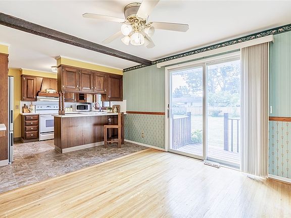 Spacious 4BR, 1.5BA split-level in the Greece Central School District with hardwood floors upstairs, new carpet in the living room, and remodeled baths. Bright dining area opens to a sunny backyard. Kitchen with plenty of cabinets, pantry, and all appliances included. Lower-level family room + 4th bedroom. Attached garage with epoxy floor. Partially fenced backyard with slate patio. Conveniently near 390, shopping & parks.