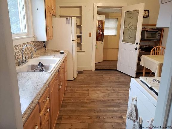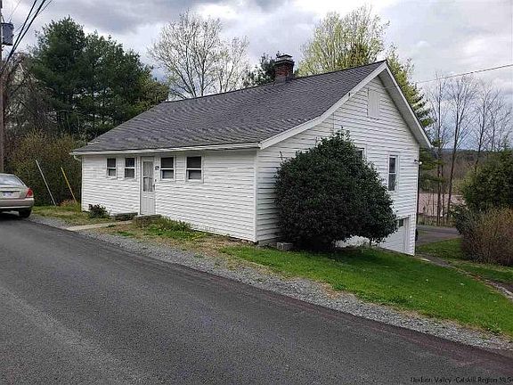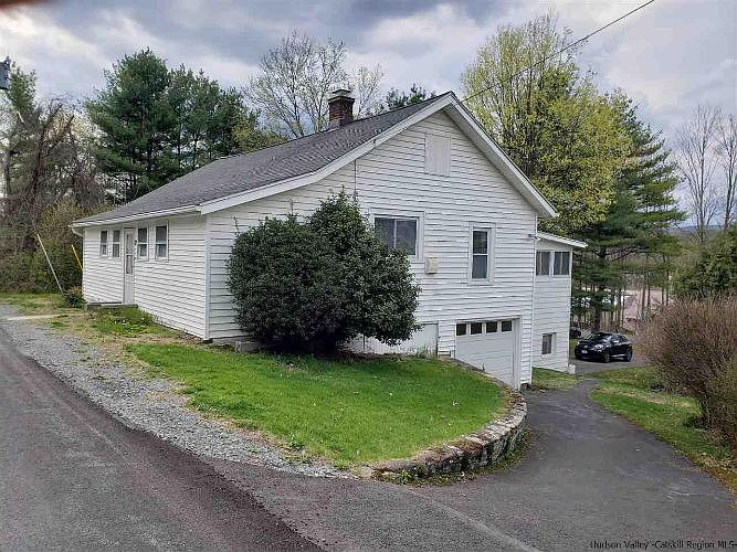 This 3 bedroom ranch home offers so many possibilities. Large 25x12 Livingroom can comfortably be divided into a formal dining area and livingroom. The largest bedroom is 21x9 and has an extra 7x3.5 nook area. The middle bedroom has a door to the expansive rear enclosed porch. This porch is L-shaped 24x11 and 13.5x11 and could be converted into a family room as it is fully enclosed with vinyl replacement windows. In fact the entire house has vinyl replacement windows, and a newer furnace and hot water heater. There is a tandem 2 car garage under the house; but also a super large, extra height 2 car garage attached at the rear of the home. This would be great for the car enthusiast or could be gear as a studio for your band to practice; or for the artist to have a workshop. Easy access to Rte 209.