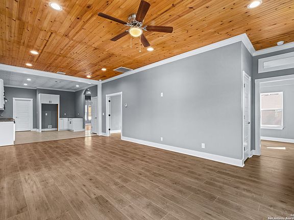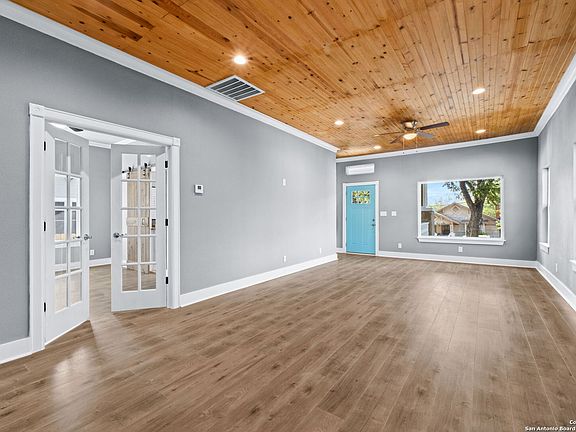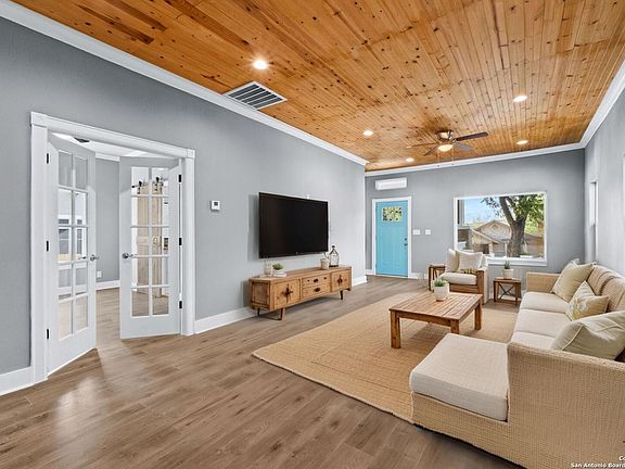 Experience the perfect blend of historic charm and modern design in this single-story Beacon Hill Craftsman. Large windows, crown molding, recessed lighting, transom windows, and charming tall ceilings create an airy, light-filled atmosphere. Flowing seamlessly from the open-concept living and dining spaces, the kitchen offers generous counter space, soft-close cabinets with built-in spice rack, rotating corner shelves, and a timeless white subway tile backsplash. Barn doors throughout the home add character and functionality. Retreat to the private primary suite with a generous walk-in closet and spa-inspired bath featuring an oversized tiled shower and double vanity. The secondary bath also boasts double vanities and a convenient entry for both secondary bedrooms. The inviting covered front porch welcomes you home, and the large backyard provides space for entertaining, gardening, or pets to play with a newly installed privacy fence! Ideally located near San Pedro Park, downtown, and IH-10.