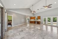 - Bookcases, Breakfast Bar, Ceiling Fan(s), High Ceilings, Laminate Counters, Eat-in Kitchen, No Interior Steps, Open Floorplan, Primary Bedroom on Main, Walk-In Closet(s)