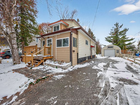 Welcome to 129 Dunlop Street, a charming 1 1/2 storey home set on a deep lot in beautiful Orillia. This well-kept property offers exceptional flexibility with a main living area plus a convenient rear secondary living space, ideal for extended family, multi-generational use, or income potential.The main portion of the home features an inviting mudroom, a spacious eat-in kitchen, three bedrooms, and a full 3-piece bath with a walk-in shower. The rear second unit adds additional versatility with its own kitchen, 3-piece bathroom, cozy living room with walkout to the deck, and a comfortable bedroom. This practical layout provides separation and privacy while maintaining an easy flow throughout the home.Outside, enjoy the large level backyard, perfect for gardening, play, and outdoor entertaining. A detached garage and private double drive provide extensive parking. Located close to the hospital, beaches, parks, library, and recreation centre, this home offers convenience and lifestyle in a family-friendly neighbourhood.Ideal for first-time buyers, investors, or those looking to generate supplementary income, this property delivers comfort, utility, and great potential.