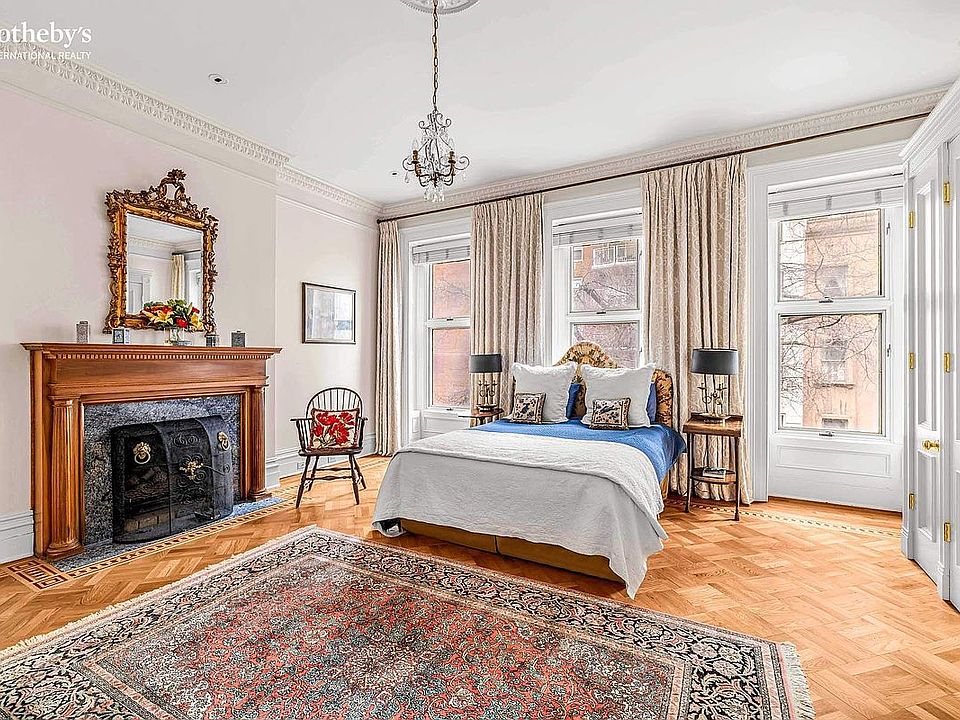 Set behind an elegant wrought-iron gate, this townhouse exemplifies refined luxury with an unmistakable sense of timeless sophistication. From the moment you enter the inviting foyer, soaring 11.5-foot ceilings and abundant natural light highlight meticulously maintained original details while six fireplaces create a warm and captivating ambiance.