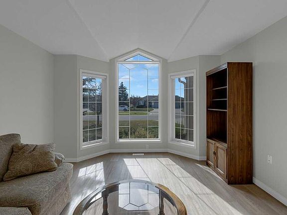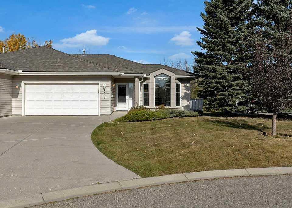 Welcome to Prince of Peace Village! This 3-bedroom, 3-bathroom duplex bungalow at 129 Covenant Bay offers low-maintenance living in a peaceful 55+ community just outside Calgary. With over 1,272 sq.ft. on the main floor plus a fully finished basement, this home is designed for both comfort and functionality. The main level features an open floorplan with vaulted ceilings, a bright living room anchored by a cozy three-sided gas fireplace, and a dining space perfect for gatherings. The kitchen is well laid out with ample cabinetry and counter space. Two bedrooms, including a spacious primary suite with 4-piece ensuite, complete the main level. Downstairs, you’ll find a large games/rec room, an office, a third bedroom, a full bathroom, and plenty of storage—ideal for hobbies or visiting family. Enjoy the outdoors on your private deck backing onto green space, with walking paths and landscaped surroundings. The attached double garage and driveway provide parking for up to six vehicles. Additional features include central A/C and main floor laundry. Located minutes from East Hills Shopping Centre, Chestermere, and Calgary city limits, this is a rare opportunity to downsize without compromise in a welcoming, adult-living community.