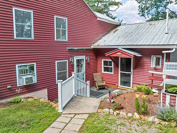 Experience the charm and serenity of 129 E. Huntress Pond in Center Barnstead, NH, a picturesque 3-bedroom (plus additional bonus rooms), 1-bathroom Gambrel-style home nestled on nearly 9 acres at the end of a private road. The property offers a peaceful retreat from the hustle and bustle of everyday life, surrounded by natural beauty. Boasting an impressive 600 feet of water frontage on Huntress Pond, this home provides the perfect gateway to endless waterfront adventures. Enjoy breathtaking Southwest-facing views that offer spectacular sunsets, making every evening a memorable one. The generous acreage ensures ample privacy and offers exciting possibilities for future building. Whether you're envisioning a guest house, studio, or simply expanding your outdoor space, the options are limitless. The home's 14 x 21 outdoor covered porch is an ideal spot for grilling, family dinners, or simply savoring the stunning water views. A terraced stairway gracefully leads to the waterfront, where a private dock and firepit create an idyllic setting for relaxation and gatherings. For those who love to embrace the great outdoors, a patio and picnic table near the shoreline provide another perfect vantage point to enjoy the tranquil surroundings. Barnstead offers many year-round activities from snowmobiling and hiking to fishing, kayaking, and canoeing. There’s always an adventure waiting just outside your door!
