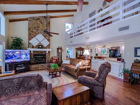 Lovely Lake Cypress Springs Waterfront Home located in the Premier Gated Community of Tall Tree 170 FT Shoreline 1.2 Acres This beautiful home showcases a GR with towering beamed ceilings, wood floors, stone WBF, open kitchen-dining, windows with a direct view lake & boat house beyond. Updated kitchen; chiseled edge granite, new appliances, glass cabinet fronts, farm house sink, designer fixtures, island. 4 bedrooms, three baths for guests. Decks both covered and open are amazing for enjoying the tranquility of this location. 28 x 22 Garage, workshop. Car Carport, Boat House Lift. This homes illustrates pride of ownership throughout. We invite you to make this your own dream lake home!