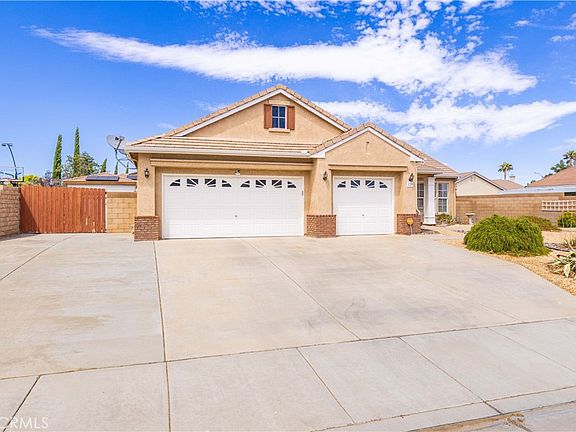 Single Story West Palmdale Country Club area home!! 3 car garage, RV parking paved and gated! Professional landscaping and Backyard Patio runs the length of the house! Welcome home to this charmer with open floor plan Living room and family room. Kitchen has tile countertops and center island with seating. An area for a table for eating in the kitchen. Family room is open to kitchen for family gatherings. Sliding glass door leads to covered patio that runs the length of the house! A serene setting is present in backyard with block walls and lawn area. The primary bedroom has a Walk in closet and French doors to back patio. A laundry room leads the way to a 3 car garage with room for work bench!