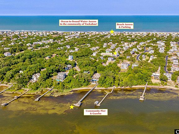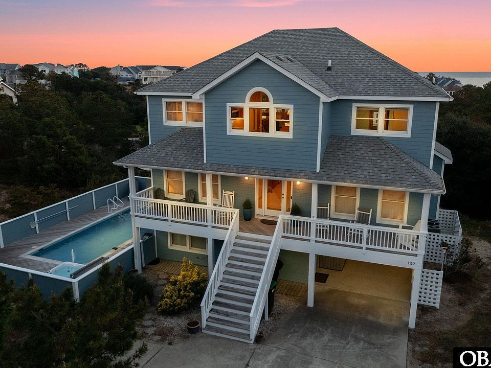 Breathtaking water views and majestic sunset vistas will steal your heart in the seaside town of DUCK! With its high elevation this truly turn-key beauty showcases an extensive list of recent home improvements & sparkling water views of the Currituck Sound. Nestled in the sought-after community of Tuckahoe which offers rare and invaluable amenities with private beach access, oceanfront parking, easy crosswalk on Duck Rd, a community pool, tennis court, plus sound side pier with gazebo for crabbing, fishing and water sports. For more seaside fun, pop over to the village of Duck on bike, golf cart or foot to enjoy all it has to offer, from upscale dining to sunset cocktails, shopping, yoga, town events, music and more! Thanks to meticulous homeowners you'll be settled in and relaxing in no time because the updates and maintenance have already been done for you! Quality built through and through the home offers 7 spacious bedrooms, 5 1/2 baths, nearly 3,500 square feet of living space & amenities with Game Room, newly refinished private pool & hot tub make it an ideal investment property. A light and bright Great Room with Oceanview offers an open-concept floor plan delightful for entertaining guests. You'll be thrilled with the recently updated LVT flooring with fresh new decor & furnishings. A well-appointed Kitchen steals the show featuring a new GE Café appliance suite with Induction cooktop & dual oven, counter-depth French door refrigerator with ice maker, new sink & plumbing fixtures, accent tile backsplash, under counter lighting & beverage cooler, granite countertops, 5-stage reverse osmosis water filter w/dedicated faucet, coffee bar, and plenty of cabinetry for your provisions. Adjacent to the kitchen is a Powder bath and the Primary Bedroom Suite with oversized bath, soaking tub, dual vanities plus 2 walk-in closets. The home's mid-floor features a welcoming Foyer, custom office/den niche, 1 of 2 Stackable Washer/Dryer Units, and 4 EnSuite Bedrooms, 2 with private baths and 2 with shared Jack and Jill bath setup. The west-facing covered deck with additional water views is sensational for lounging or reading just beckoning for daybeds and hammocks to rest the day away! A dry entry from carport opens to the Ground floor with spacious Game Room, Wet Bar with full-sized fridge, the 2nd Laundry closet, a full bathroom, 2 additional spacious bedrooms and easy access to the pool deck. The sparkling swimming pool & hot tub are equipped with covers for winterizing off season. You'll appreciate the new pool deck, a large out door shower with dressing area, new furnishings & stainless steel propane grill will entertain a crowd while you take in the glorious sunsets. The exterior of the home truly shines with lovely landscaping, all new exterior paint, new top-floor DECK w/low-maintenance vinyl deck railings, new roof, refinished pool surface, new LED lighting, many new windows, Polywood outdoor furnishings, new custom window treatments, decor, 3 WIFI app-enabled Thermostats, WIFI sprinkler controller, weather station, multiple security cameras, over-the-air antenna with amplifier for streaming to many new TVs & outdoor shed for storing tools, beach gear & more. A complete list of improvements is available in Associated Documents or per request. Furnishings convey with the sale, property not currently rented and used as a second home. Looking for an income producer? Look no further, this 7 bedroom is projected to produce $107k annually. Don't miss your opportunity to own a truly turn-key beauty with everything to offer in Duck! For 3D Virtual Tour copy and paste the following link: https://unbranded.youriguide.com/129_fawn_ct_duck_nc/