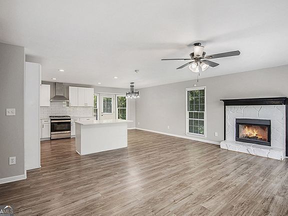 Welcome to this beautifully updated 4-bedroom, 3-bathroom home offering the perfect blend of modern comfort and timeless charm. Nestled in a quiet neighborhood and backing to serene woods, this home provides both privacy and peaceful surroundings on almost 2 acres at the end of a cul-de-sac. Step inside to discover an open-concept layout with stylish upgrades throughout. The heart of the home features a modern kitchen with white shaker cabinets, a classic farm sink, sleek white granite countertops, a gas stove, and ample prep space-perfect for both everyday living and entertaining! The inviting living area includes a cozy fireplace and flows seamlessly to the spacious dining area and kitchen, creating a warm and connected space. Upstairs, you'll find three generously sized bedrooms and a 2 full baths, offering space and flexibility for the whole family. The master suite is conveniently located on the main level and features a private en suite bathroom. An additional bedroom and bathroom are located downstairs, perfect for guests or a home office. Enjoy outdoor living at its best with a covered front porch and a large, private backyard patio-ideal for grilling, entertaining, or simply relaxing. With stairs that lead to the yard and no rear neighbors, you'll love the sense of seclusion this home offers. Additional highlights include a 2-car garage, updated fixtures, and thoughtful finishes throughout. Don't miss this move-in ready gem that combines style, function, and privacy-all just minutes from local conveniences! Qualifies for up to $18,495 in down payment and closing cost assistance with preferred lender.