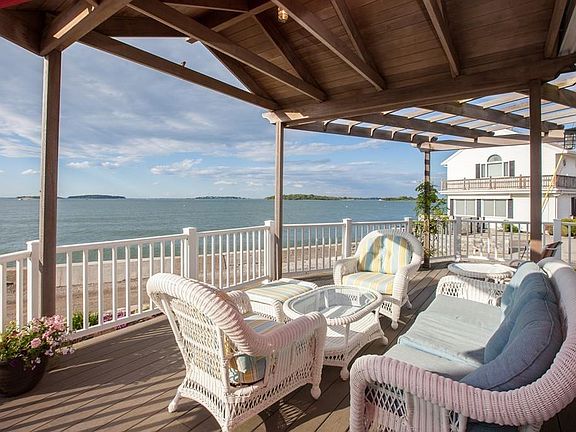 Fantastic Water Views!! Amazing sunsets!! This home offers a spacious open floor plan with high ceilings and lots of oversized windows. Lovely kitchen with stainless appliances and granite counter tops. Great living room and dining area with a gas fireplace. The open floor plan works perfectly for entertaining. Walk right out from the living area onto an amazing first floor deck and lovely court yard and gardens. Large master bedroom has a walk in closet and door leading to a 2nd floor deck. Great mudroom area with built in closets. Sunny office area on 2nd floor. Built in book cases on the second floor landing. Lounge around on the spacious decks and watch the boating activity and Boston harbor islands all while you are enjoying the ocean breezes. Beautifully landscaped gardens and grounds with flowering plants and shrubs. Fenced in back yard & shed. Large 2 car garage with a second floor loft with lots of storage space. Steps to sandy beach. Close to commuter boat and train.