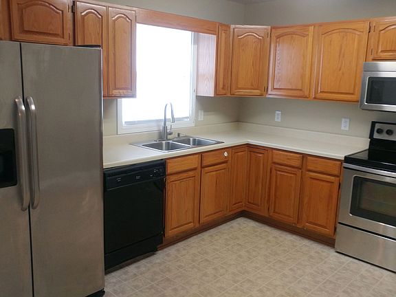 FRESHLY PAINTED 3 BR, 2 1/2 BATH, WITH GARAGE AND EXTRA STORAGE SPACE. CLOSE TO SCHOOLS AND CHILD CARE. FRIENDLY NEIGHBORHOOD WELL KEPT OUTSIDE SPACES. UPGRADED KITCHEN WITH TILE BACKSPLASH AND PANTRY, SPACIOUS DECK, WASHER DRYER HOOKUPS. NEWER FLORING IN UPSTAIRS 3 BRS.