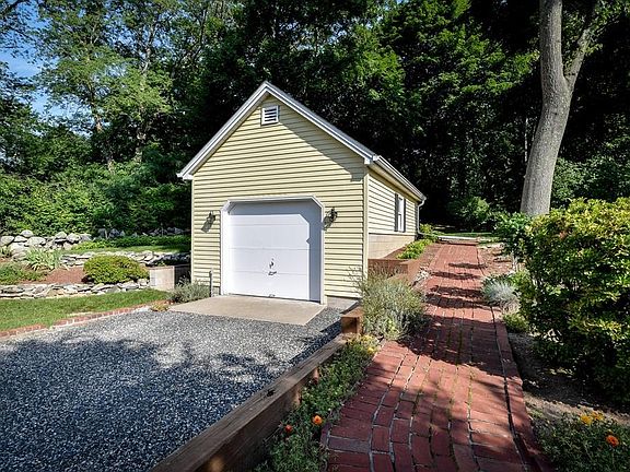 Darling immaculately maintained a "small" home- It has 729 ft.²... It has everything you need and would be a perfect condo alternative ... Bright and cheery white kitchen with tile flooring and lovely exposed brick to add a little personality, mud room with boiler and closet, compact living room with fireplace... There are 9+ foot ceilings throughout the home... Cute and cozy sunroom with lovely blue stone flooring exterior access and pulldown attic space...Two bedrooms with wall-to-wall carpeting and closet space in each room, nicely updated blue & white tile bath. This home has lovely gardens and perennials -well cared for with love and attention to detail. Pretty brick walkway...Detached one car garage added in 1997, great storage, workshop area and loft/storage space. Updated roof in 2015, vinyl siding, updated windows, 100 amp electric service, Great proximity to Boston train, shopping and commuting access to all. Showings begin Tuesday morning! No open house-appt's only
