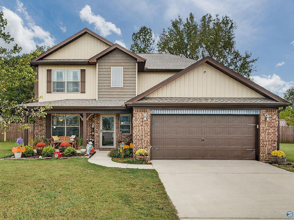 Charming Home on a Spacious Cul-de-Sac Lot! Located in a quiet, convenient neighborhood just 18 minutes from Downtown Huntsville, this beautiful home offers a great blend of comfort and functionality. The main level features hardwood flooring and a stylish kitchen with granite countertops. Upstairs, you’ll find a large loft area that would be the perfect home office or playroom! The upstairs also offers easy access to attic storage, plus two oversized bedrooms and a full bath—perfect for family or guests. Enjoy the privacy of a fully fenced backyard, complete with a storage building and dog house with additional chain link fencing that will remain with the property.