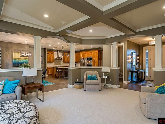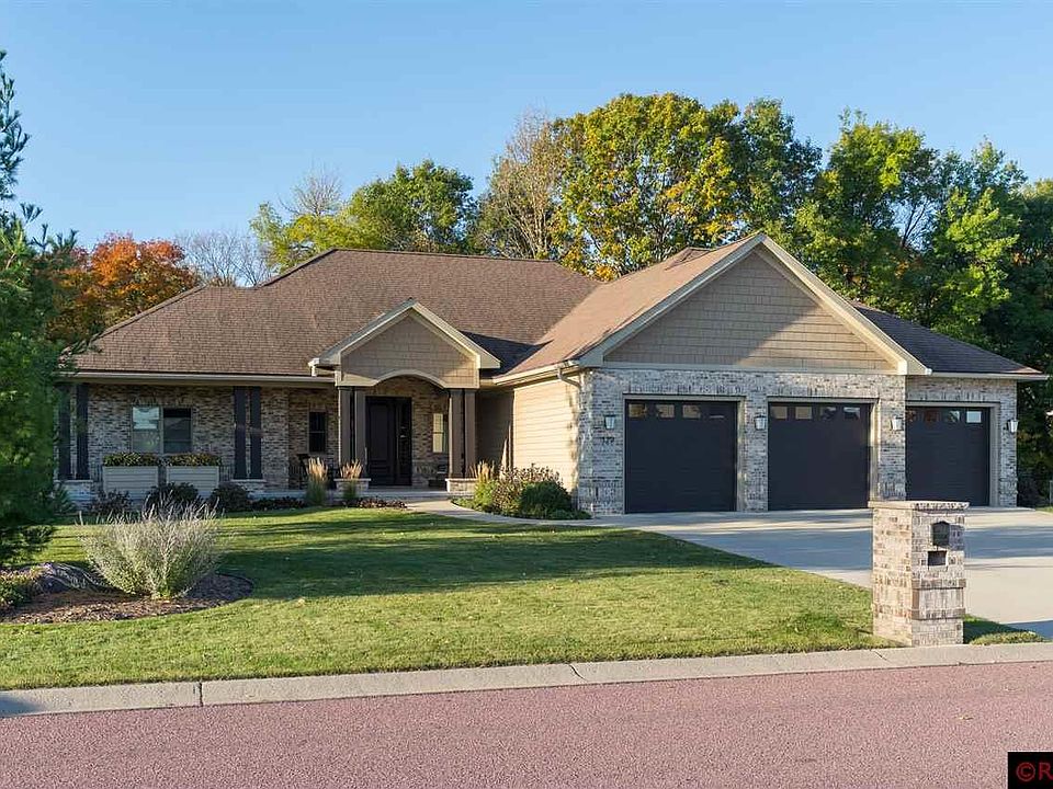 Not a detail was overlooked on this beautifully designed 4 bedroom, 4 bath rambler situated on a stunning ravine lot in a desirable hilltop Mankato neighborhood. The moment you step onto the large front porch and into the foyer of this immaculate home you are greeted by a breathtaking view of the wooded back yard through the extra large windows. The custom gas fireplace beckons you to have a seat and relax while you enjoy watching the birds and other wildlife frolic in the yard. The unique architecture of the main level living area features beautiful columns and coffered ceilings, and the spacious kitchen boasts gorgeous cherry cabinetry, Cambria countertops, a large island with breakfast bar, gas cooktop with range hood, subway tile and stainless steel appliances. The adjacent dining area is situated near large large windows overlooking the back yard and deck. The main level master bedroom has windows overlooking the back yard and the spacious attached master bath features a walk-in shower with glass tile details, a separate jet tub, double vanities and an incredible walk-in closet with sleek, well appointed closet organizing system and luxury cork flooring. Rounding out the main level is an additional bedroom in-suite with full bath as well as a guest 1/2 bath. Moving to the lower level of the home is a great room with a dry bar area, as well as a nice seating area with heated mat under the carpeting for extra cozy comfort. Two more bedrooms, a full bath, utility and storage rooms round out this level of the home. The back yard is expertly landscaped with patio paver areas, a maintenance free Trex deck and piped in gas for your grill. The immaculate heated 3 stall garage has plenty of space for your vehicles and toys. Additional notable features of this incredible home include...touches of tasteful wall paper, spray foam insulation, 4 different areas of in-floor heat, hot/cold water spicket in the garage and many more great details to this home.