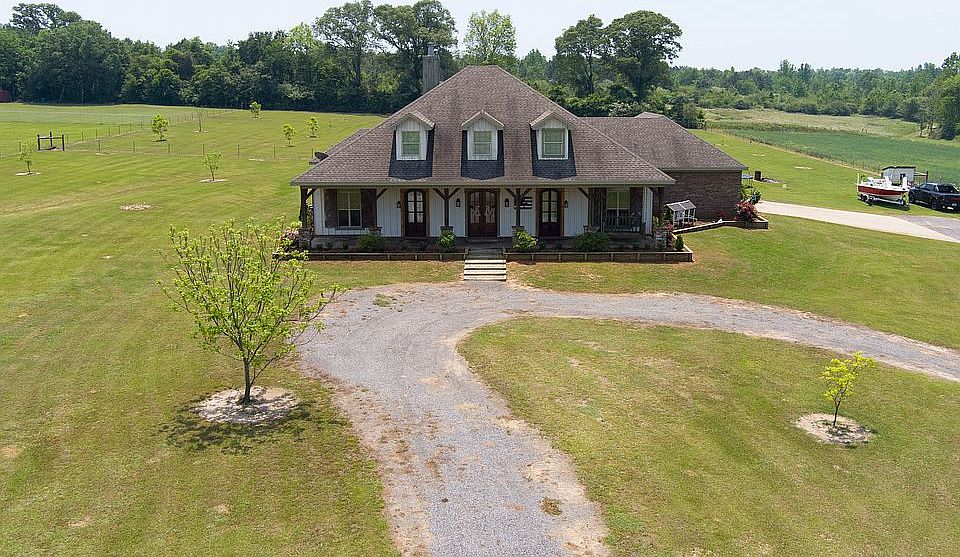 Built in 2016 this home features 3 bedrooms plus office and 2.2 bathrooms. The home has spray foam insulation and stained concrete floors throughout. The home features an open floor plan with split bedrooms offering lots of privacy. The master suite has large his and her walk in closets, a tile walk in shower and a large garden tub. The guest bedrooms have Jack and Jill attached bathrooms. There is also a 500 square foot bonus room upstairs. The home sits on 6 acres which is partially fenced and has a pecan orchard started. Call to set up your viewing of this great home today. 251-459-2162. Owners will work with buyers agents!