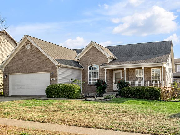 Welcome home to this inviting 3 bedroom, 2 bath ranch featuring a split bedroom design. A covered front porch welcomes you inside, where you'll find a vaulted formal dining room and family room with tall ceilings and a cozy fireplace. The spacious eat-in kitchen offers excellent counter and cabinetry space with tiled backsplash and dishwasher and range. Washer and dryer are also included for added convenience. The primary suite features a full bath with a separate tub and shower, a double bowl vanity, and two walk-in closets. Two additional bedrooms provide flexibility for guest, family or a home office. Enjoy the outdoors in the fenced rear yard, ideal for pets, gatherings, or playtime. The home also includes a 2 car garage with an additional storage area offering plenty of room for tools, equipent, or seasonal items. Move-in ready and full of charm, this ranch home is a wonderful find. Don't miss your opportunity to make it yours!!