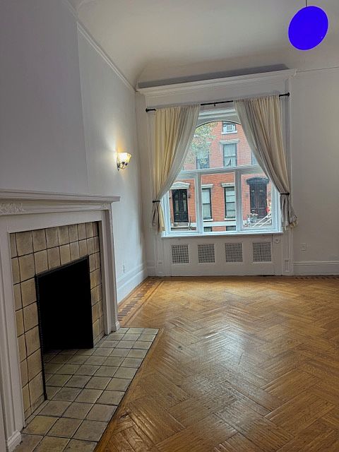 Charming Studio in Central Brooklyn Heights. Parlor floor with soaring ceilings. Arched window Original Eastlake Fireplace Mantle. Gorgeous Inlaid parque floors. Impressive townhouse located in Central Brooklyn Heights! No pets please- immediate occupancy.