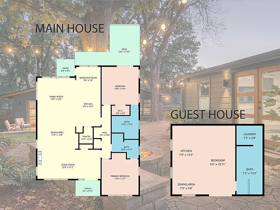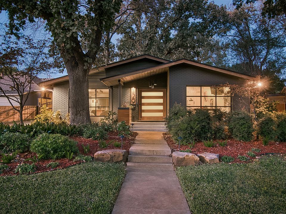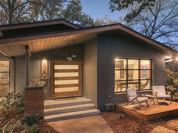 Mid Century Modern Masterpiece in Beautiful Karem Park. A rare find, this luxurious home and separate approx. 500 sq ft guest house have been meticulously renovated from top to bottom with high end finishes. Located just minutes to Waco’s thriving downtown, Baylor University, Magnolia and Cameron Park. Walk to coffee shops, restaurants and local shopping. Talk about curb appeal! Stunning dark exterior, mature trees and landscaping, updated windows, deck and the show stopper – extra wide custom built pivot front door. Step inside to the light and airy open space with new white oak floors throughout, ventless gas fireplace, built in bar with oak cabinetry, ice maker and even a dog crate! Smart features include Hue lighting, Sonos sound system, Nest cameras and custom window shades. Open kitchen to the living and dining area is the perfect place to entertain. Original refinished cabinetry with the addition of smart storage solutions is the perfect blend of vintage and new. Large island with plenty of seating, coffee bar, gas cooktop, Italian tile backsplash, walk in pantry and built in banquette with storage. Custom oak Dutch door leads to the shady backyard with firepit. Primary suite features oak French doors to a wood deck and completely remodeled ensuite bath. Both baths feature new tile throughout, custom floating oak cabinetry, heated flooring, elevated fixtures and lighting. Guest room or office has a built in Murphy bed and oak cabinetry. Imagine working from home with the stunning view out the front windows! Approx. 500 sq ft detached guest house, apt. with living area and bedroom area, kitchenette and dining plus large marble bath with heated flooring, walk in closet with washer and dryer. Modern mechanicals including: updated electrical, plumbing, foam insulation, tankless water heater, new roof on main house (2025) guest house (2023), generator, sprinkler system, new fencing on sides, gated driveway and storage building.