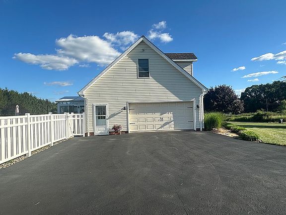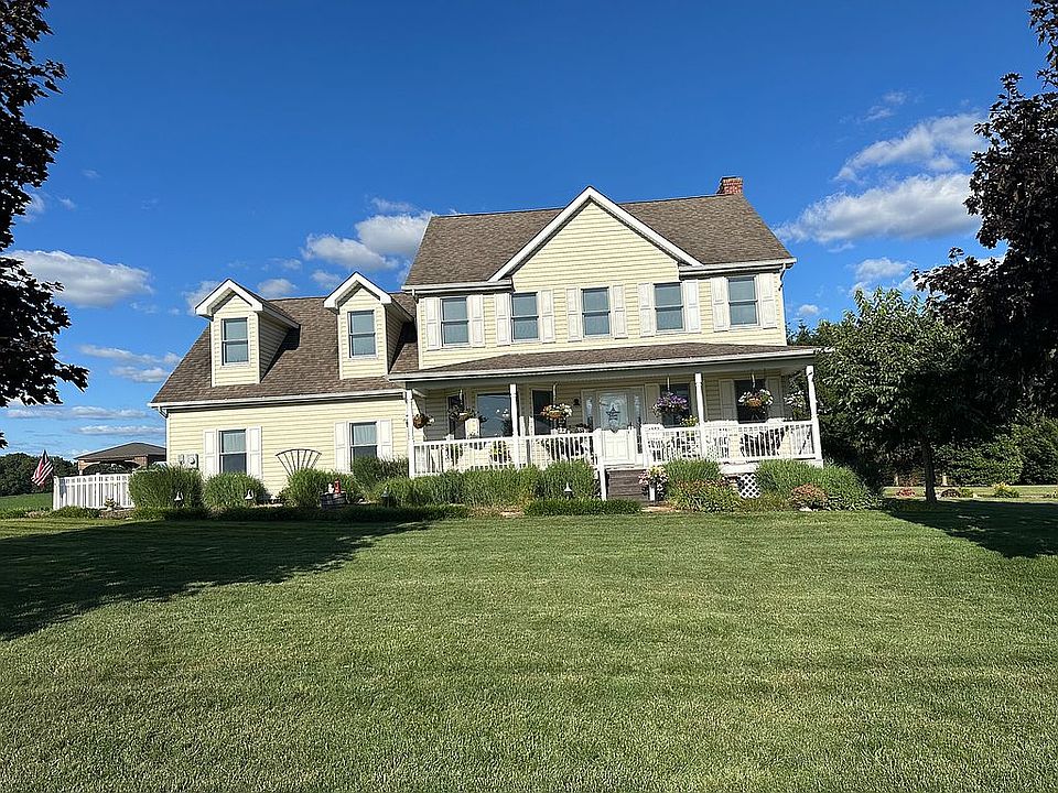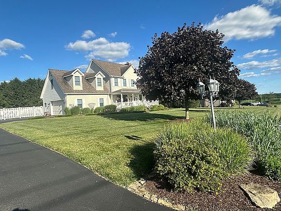 Beautifully landscaped 2 story, 1.5 acre farmhouse country home. Three zoned air/heat for comfort. Hardwood flooring in living room, dining room, and foyer. Six panel - solid oak doors and trim throughout. Wood burning/gas insert 10 foot barn stone fireplace in the living room. Gorgeous 18x36 in-ground pool and outdoor entertainment area under pergola. Bright floor to ceiling glass, 4 season sunroom. Knoch School District