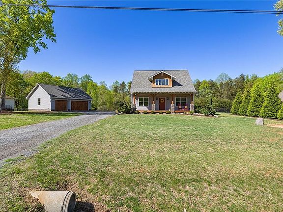 Lovely custom built 3 bed/2.5 bath home sitting on a private 1.39 ac lot w/3 car detached garage & rocking chair front porch! Garage is 22'x32', insulated & has power. This home offers lots of natural light & landscaping. The kitchen has granite countertops, pantry, bar seating & find more space in the formal dining room. The primary suite is on the main level w/double vanity & separate shower. Laundry room w/sink also located on the main level off the side porch entry into mudroom. Upstairs find the bedrooms, loft sitting area, 2 heated/cooled 5x10 storage rooms almost finished & a full bath. Don't miss the play area nook located in one of the bedrooms! Exit out back of the home to enjoy the amazing 12'x16' deck w/seating for entertaining, fire pit in the back yard & small trail in the wooded area. This home is unique, cozy and move in ready w/a location thats close to it all. Recent updates to include; New garage doors in 21', garage door motors, new dishwasher & new well pump 24'.