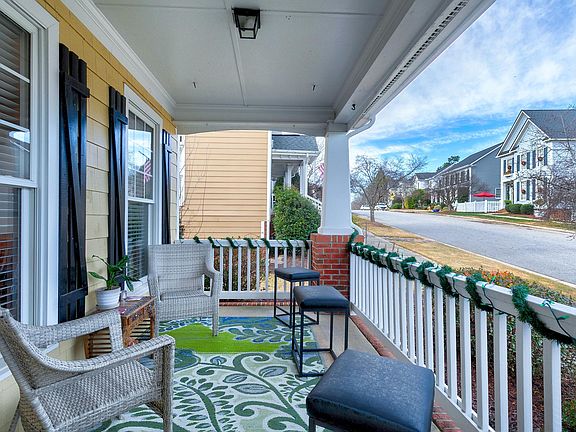 Make finding the perfect home part of your New Year's Resolution! This Craftsman style home in the desirable Sunset Ridge Golf and Pool Community on this picturesque Street could be yours. Situated within walking distance to one of the Community Pools (membership fees apply). With convenient access to new the 540 extension (currently under construction), local restaurants, parks and groceries within 2 miles you have many amenities close by. Relax and greet your friends on your rocking chair front porch and enter the home through a spacious foyer. The large dining room to the right is ready for holiday gatherings and connects to the kitchen. There you will find an oversized central island and double pantry that will make meal prep easy. All stainless-steel appliances. The open concept between the kitchen, living and sunroom allows for larger gatherings and the cozy fireplace will provide the ambiance. Upstairs the vaulted main bedroom is suited for a king size bed. A spacious walk-in closet and a vintage inspired bathroom finishes off the owner's suite. The secondary bedrooms share a hall bath with tile flooring and stylish vanity. Alley access connects you to the detached two-car garage which features a Juice Box electric car charger, newer door and opener. The private low maintenance backyard is perfect to enjoy the NC weather with a new motorized awning for shade. Recent improvements: HVAC replaced 2023, roof 2021, newer carpet in certain areas.