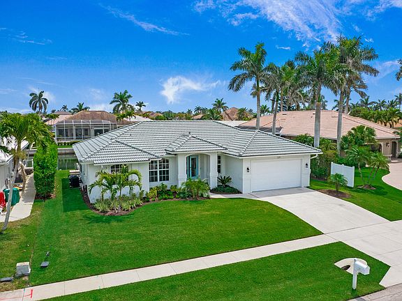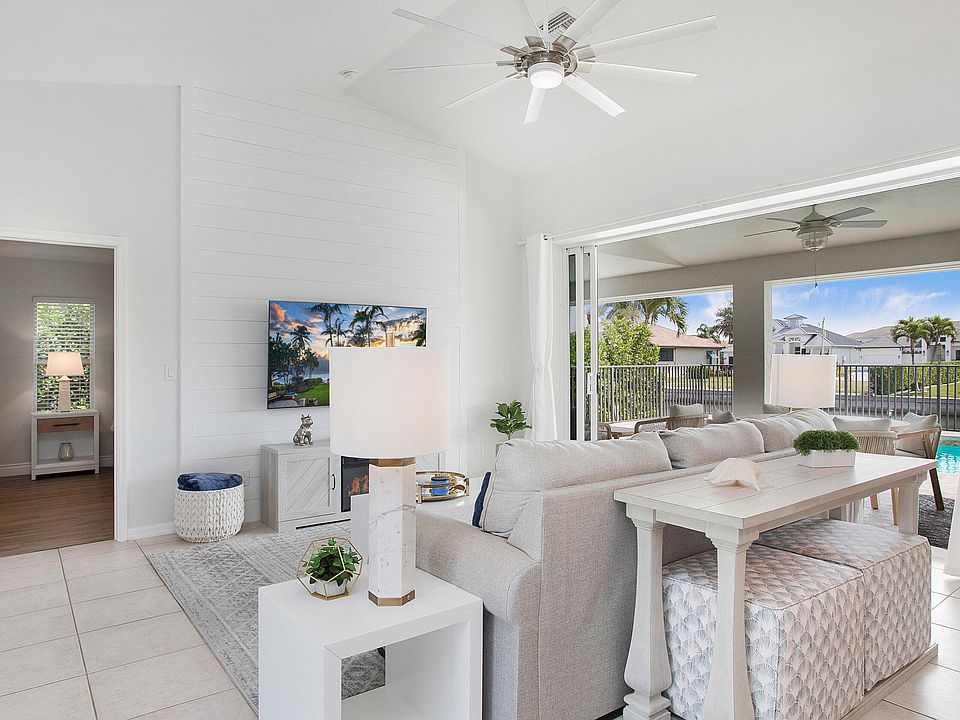 Discover your ultimate winter retreat at this exquisite waterfront residence on Marco Island, designed for those seeking a serene escape in sunny Florida. This luxurious home boasts three spacious bedrooms and two full baths, featuring an open, split floor plan that maximizes space and privacy. The heart of the home is the stunning remodeled kitchen, adorned with elegant white shaker cabinets, gleaming quartz countertops, and top-of-the-line stainless steel appliances. The wrap-around island with seating is perfect for casual dining and entertaining. The living area impresses with high-volume ceilings and new hurricane impact sliders, allowing natural light to flood the space. The expansive primary suite offers impact sliders that open to the lanai, a large walk-in closet, dual sinks, a soaking tub, and a walk-in shower. The home includes numerous updates such as new lighting, electric and plumbing fixtures, and new landscaping (2024). The HVAC system with Wi-Fi thermostat was updated in 2021, the water heater in 2022, and the interior and exterior paint was completed in 2022. The two-car garage features epoxy flooring and a built-in electric vehicle outlet. Step outside to your private lanai and soak up the Florida sunshine by the large in-ground pool. Boating enthusiasts will appreciate the new 10,000-pound boat lift and quick access to the Gulf. The privacy fence ensures your outdoor oasis remains serene and secluded. Ideally located, this home offers easy access to Resident's Beach, the new Publix, YMCA, and a variety of restaurants and shops. Whether you're looking for a relaxing retreat or an active lifestyle, this Marco Island gem has it all. Come relax and enjoy life in sunny Florida!
