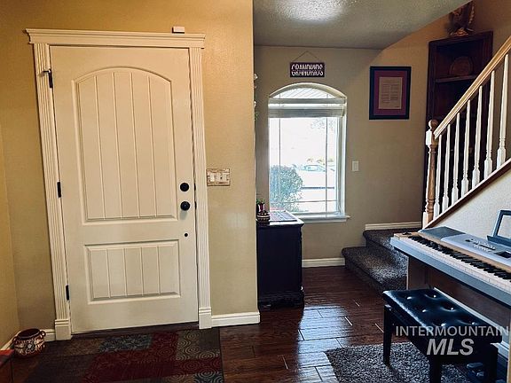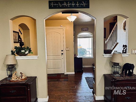 Buyer financing fell through! FRUIT TREES, CABIN, HOT TUB, and MORE, found in lovely, Mountain Home neighborhood. Beautiful, MOVE-IN READY, 3-BEDROOM, 3-FULL BATHS, 3-CAR-GARAGE in Stormy Mountain neighborhood. 2118 Sq. Ft property includes custom cabin that can be used as a he/she shed; hot tub with custom patio; established apple, peach, and plum trees (which are laden with fruit); covered patio over back porch; additional storage shelving in garage; attic storage with pull-down ladder; shed; family room; built-in study space in each upstairs room; playroom, huge master suite with newly remodeled bathroom; gas fireplace, large food pantry; 2 walk-in showers on main floor; spacious kitchen with extensive granite countertops; storage, storage, storage.