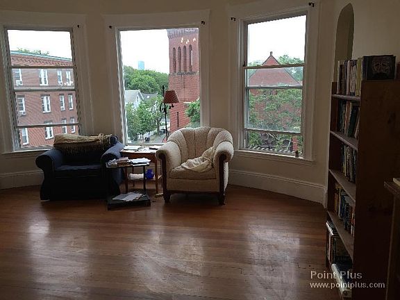 Rare opportunity to live in 1866 Victorian with soaring 11 feet high ceilings and wall sized windows. One of Cambridgeport's more renown Civil War era houses, the Ernst Flentje House (see facebook page: ) retains portions of original molding and elegance. This is a HUGE 1.5 bed PENTHOUSE apt. Very large, sun drenched rooms and a beautiful neighborhood close to Central Sq/Red Line, Charles River, Kemore Sq/Longwood Medical, Trader Joe's, etc. Large living room with views of the John Hancock Building, large eat-in-kitchen and 1 large bedroom with a smaller guest room or office. Heat and hot water included. Historic 1866 Cambridgeport Home - 1 Bedroom Plus - August 1st.